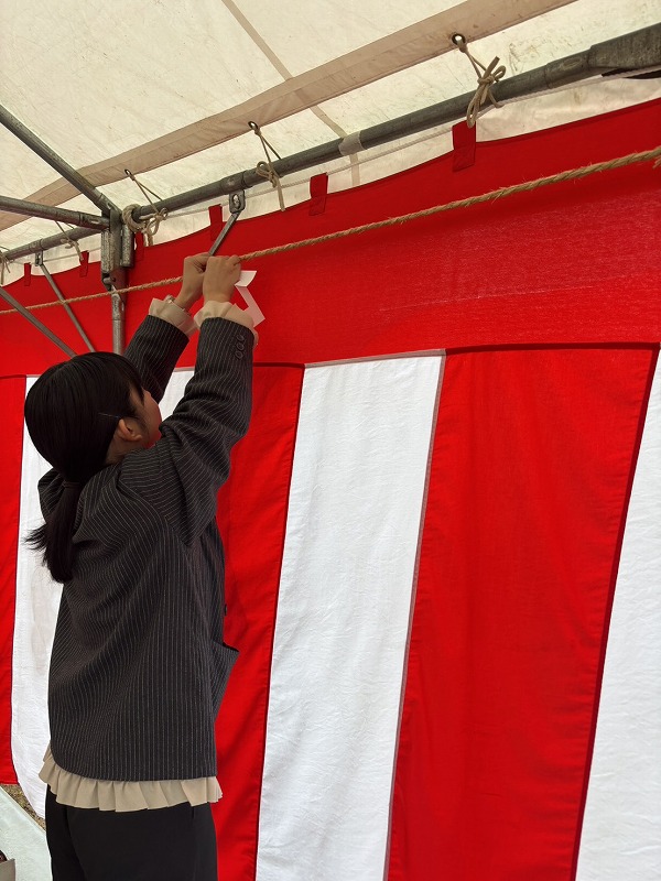 社員も心を込めて、紙垂(しで)を設置して準備、、