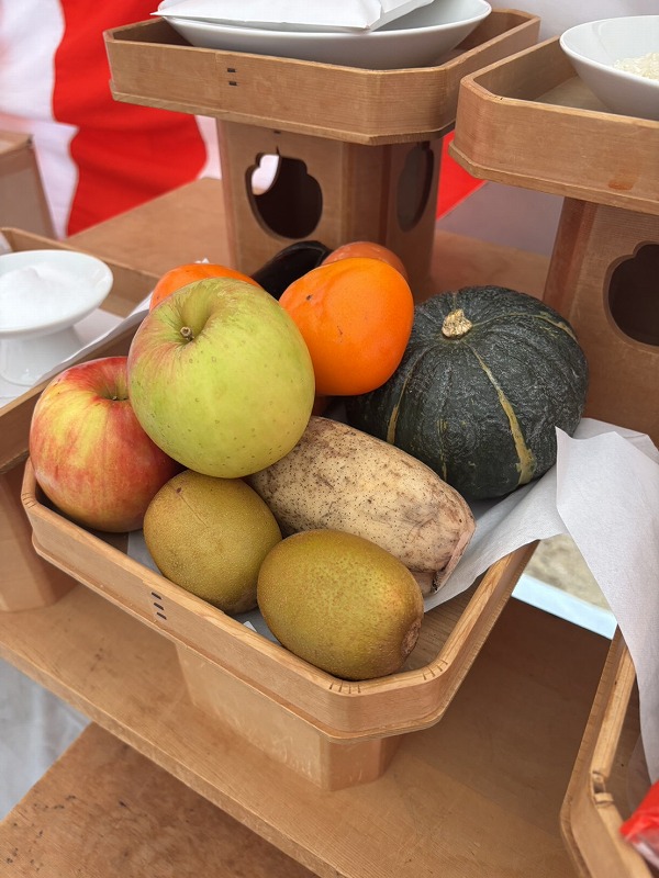 祭壇にはお供えを置き、土地の神様に